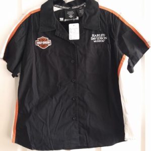 100. HD Museum Milwaukee, WI Short Sleeve Button-up Shirt Black-Orange-White 1W